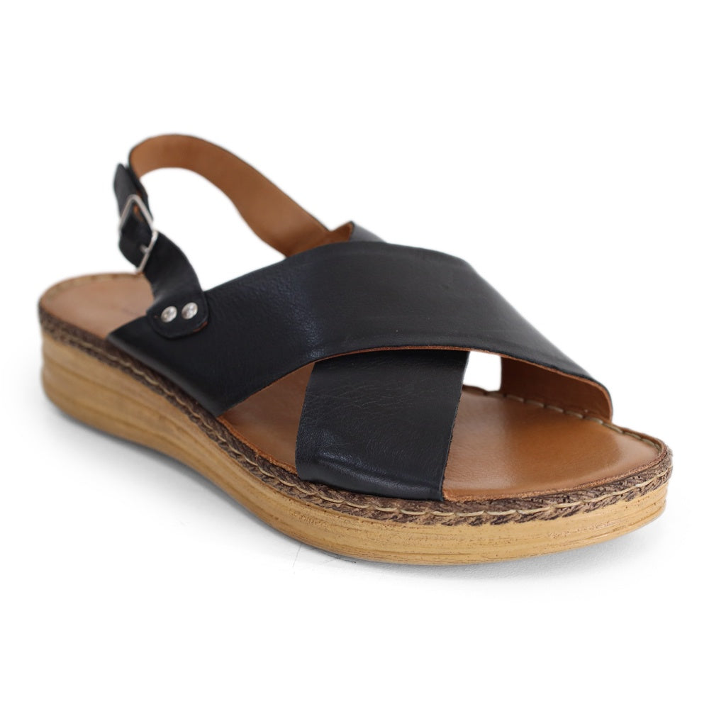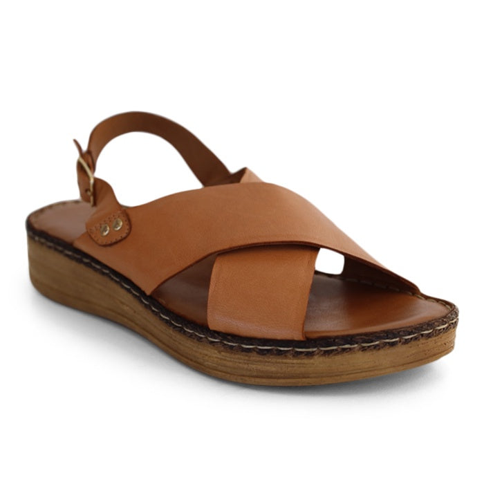 CRISS-CROSS SLING BACK SANDAL SLIDE WITH SPONGY INNER SOLE AND FOOTBED STITCHED TO A LIGHT-WEIGHT OUTSOLE. LOOK GOOD AND FEEL GREAT.