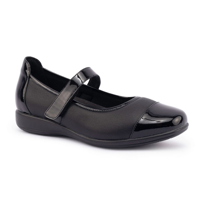 - Patent and matte leather panelling add a fashionable point of difference.